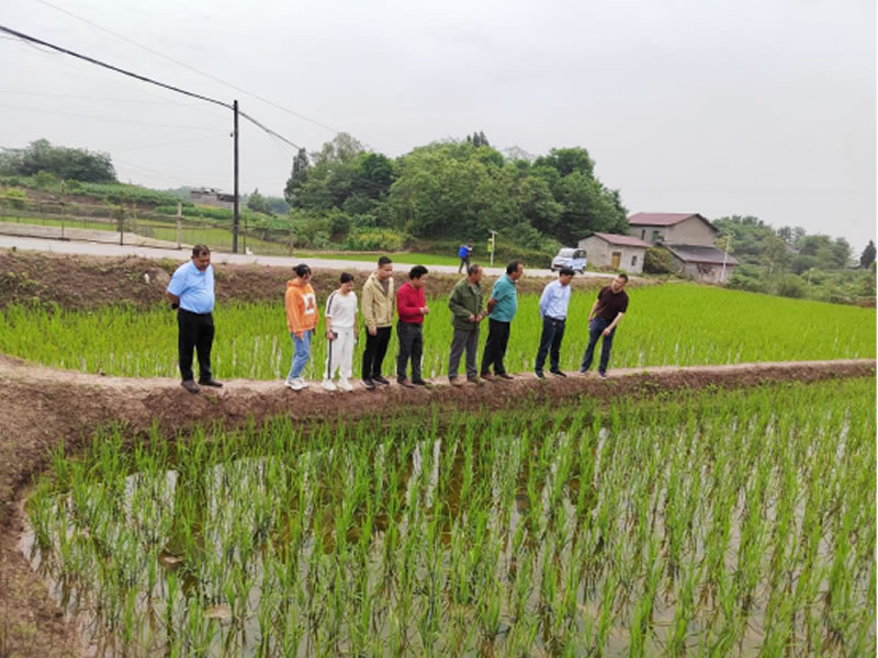 “7月属于水稻拔节孕穗期,期间要做好稻田的水浆管理,同时也要预防高温热害……”稻田旁,蓬溪县人大代表、群利镇丰源农业水稻种植基地负责人唐凤英和当地的水稻种植大户正在查看水稻生长情况,并指导他们做好水稻生长期的田间管理及病虫害防治。