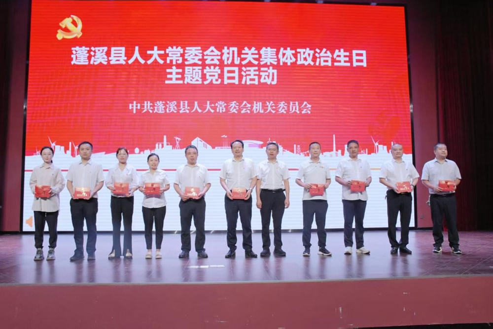 随后,全体党员干部在宣誓广场列队,面向党旗重温入党誓词,砥砺初心使命,并为近期过“政治生日”的党员颁发生日贺卡。全体党员干部纷纷表示,此次主题党日活动是一次触及思想灵魂的精神洗礼,在今后的工作中,将以革命先辈为榜样,传承和弘扬伟大的革命精神,坚定理想信念,加强党性修养,强化宗旨意识,依法履行人大职责,积极为民服务解难题,为推动全县经济社会高质量发展贡献更多人大力量。